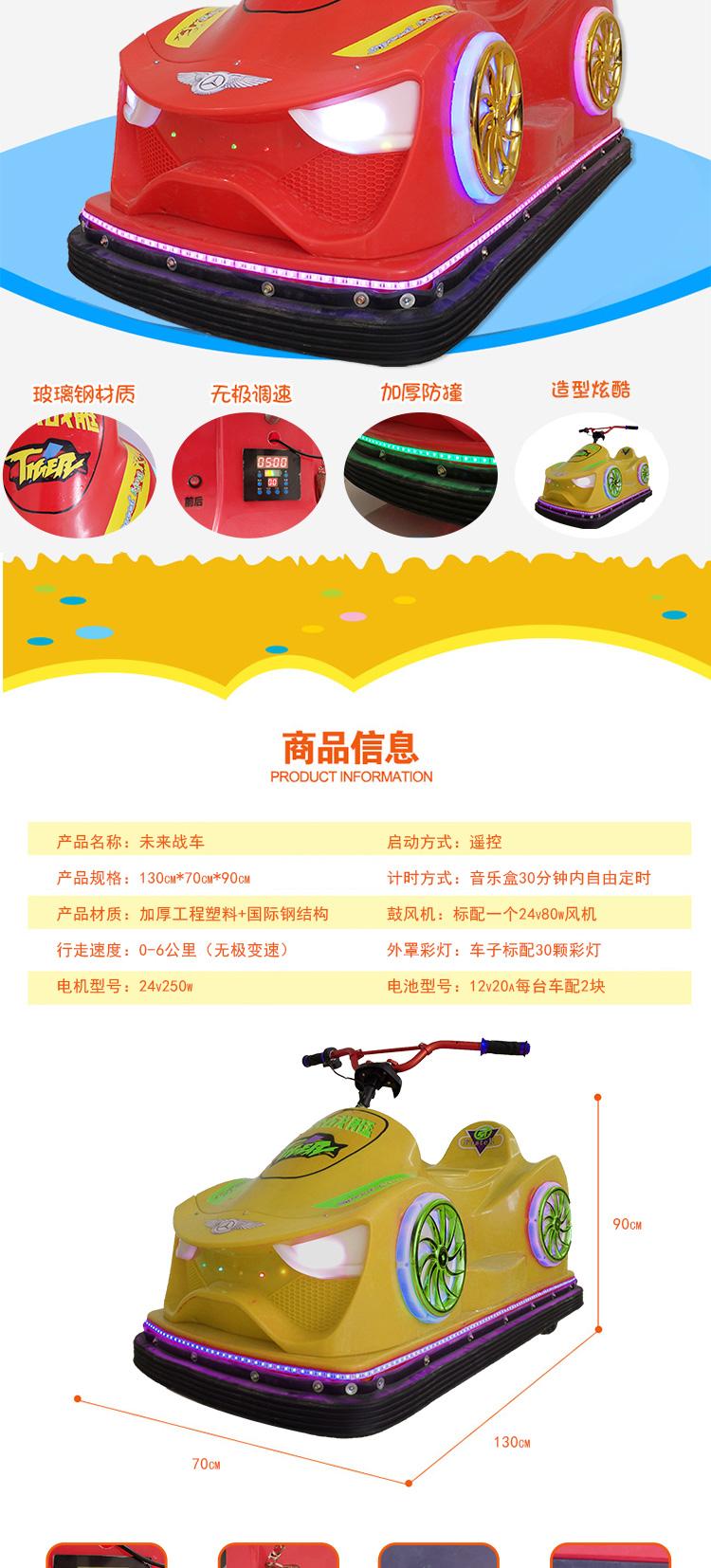 河南海倍游樂設(shè)備有限公司是一家專門從事兒童充氣電瓶車、飛碟碰碰車、機器人蹬車、充氣蹦蹦床、毛絨動物車等產(chǎn)品專業(yè)生產(chǎn)加工的企業(yè),擁有完整、科學的質(zhì)量管理體系,先進的生產(chǎn)設(shè)備,一流的技術(shù)服務(wù),完美的售后,一直以來贏得廣大客戶的一直好評,公司以誠信為根本,以質(zhì)量求生產(chǎn),創(chuàng)新求發(fā)展的經(jīng)營理念,一步一個腳印,穩(wěn)步向前發(fā)展。公司本著以客戶三個滿意為基本原則:“產(chǎn)品質(zhì)量的滿意,先進技術(shù)的滿意,售后服務(wù)的滿意”,不斷加強企業(yè)內(nèi)部的綜合競爭力,公司在競爭中求發(fā)展,在挑戰(zhàn)中謀機遇,相信我公司會給您提供優(yōu)質(zhì)、先進的產(chǎn)品,相信我公司會為您提供先進的技術(shù)和完善的售后服務(wù)。勤勞和真誠的我們愿與您攜手并進、共創(chuàng)輝煌。歡迎各界朋友蒞臨參觀、指導和業(yè)務(wù)洽談。