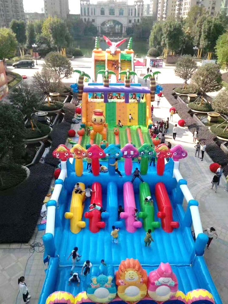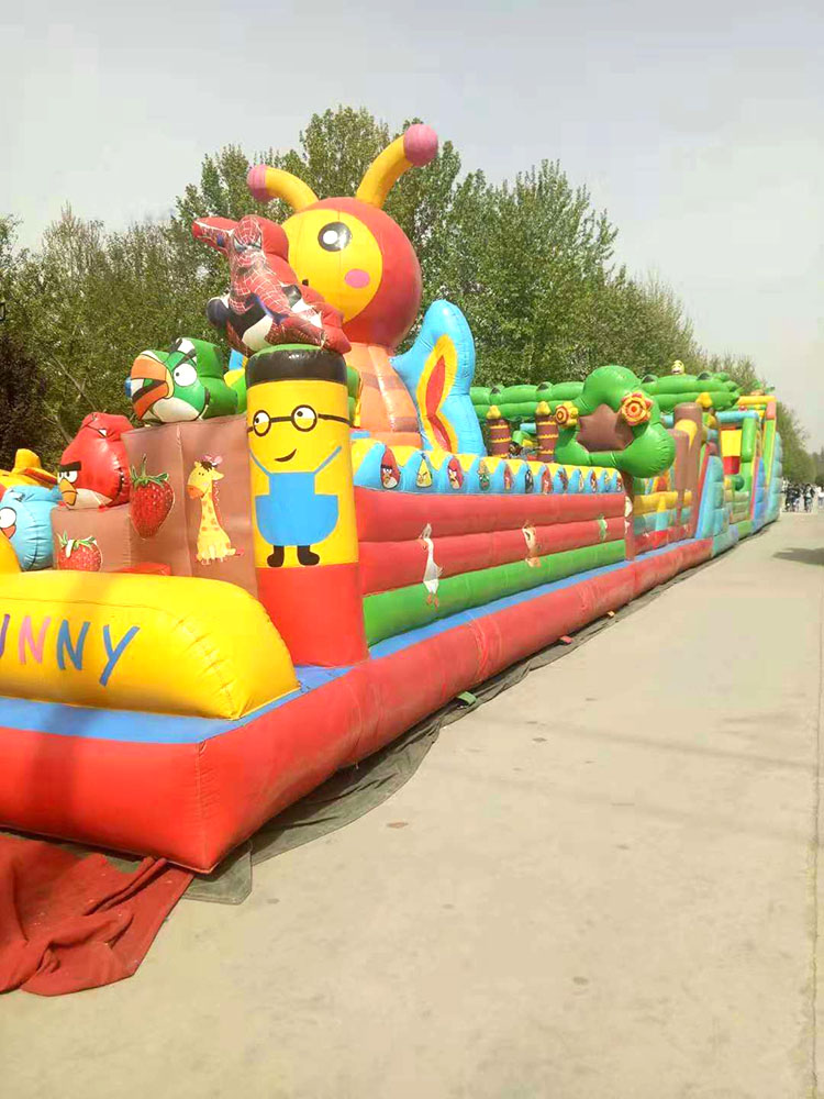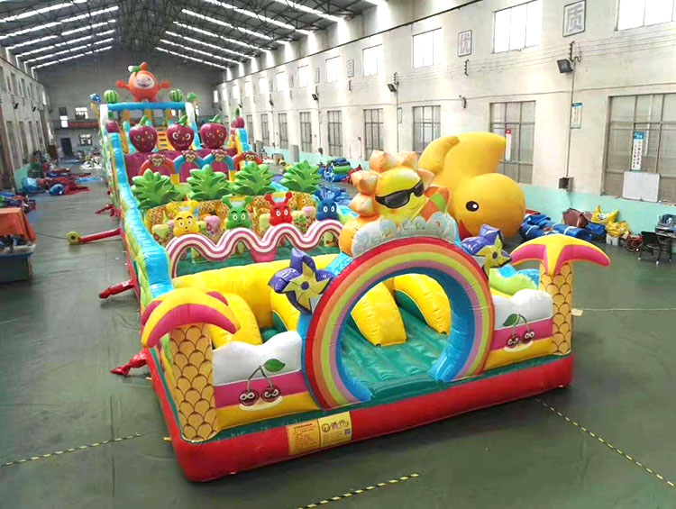 海倍游樂城堡事部專注城堡數十年如一日,有專門的設計和研發部門,有專門的城堡生產車間,接受來樣訂制,來圖設計,可以根據您的場地大小長寬多少制作